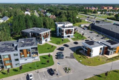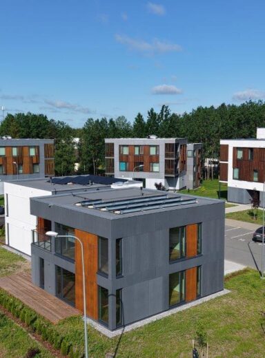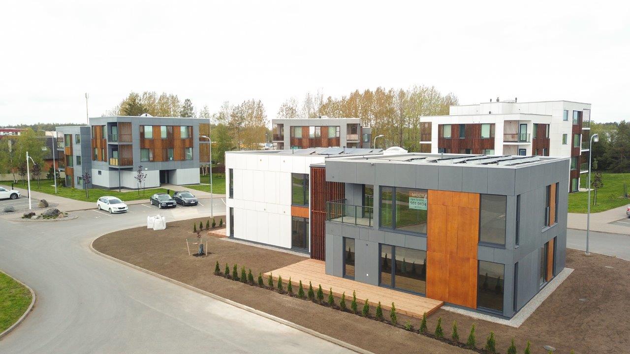 Das Team von Timbeco entwarf, produzierte und errichtete in Saku Apartmenthäuser aus Holzelementen als schlüsselfertige Lösung. Das Projekt umfasst vier Wohnungen in mehreren Apartmentgebäuden.