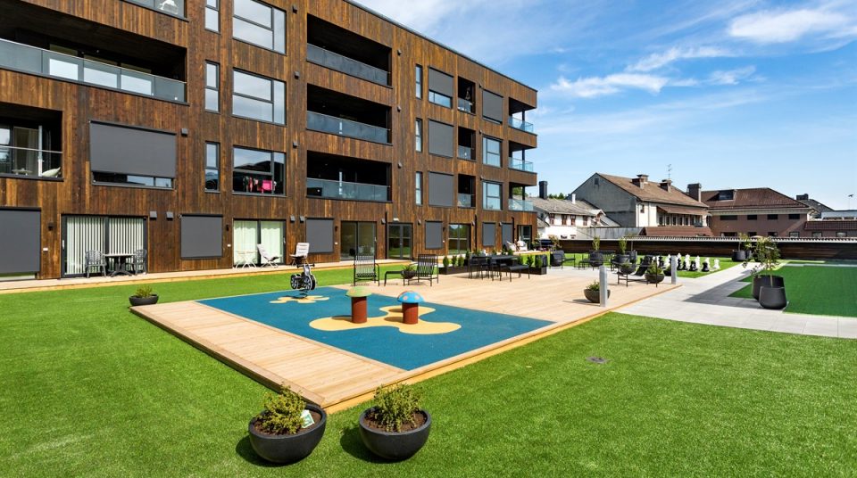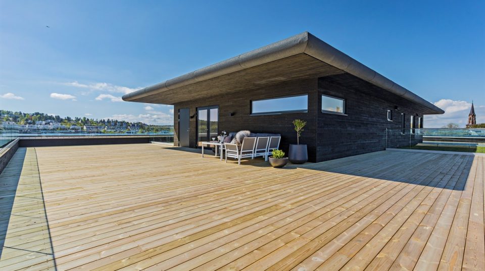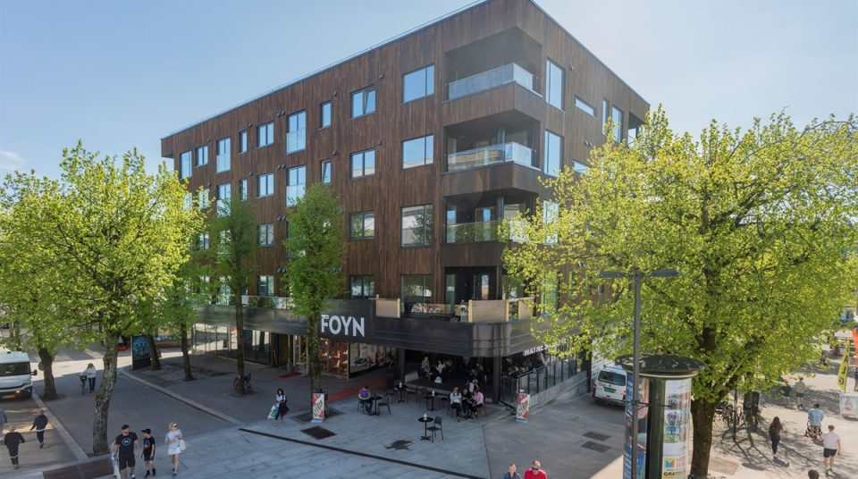 Timbeco participated in the redevelopment of the Føyntaket Shopping Center in Tønsberg, Norway, as part of a new residential development project. The project added 52 modern apartments on top of the existing Foyn Handelshus retail building. The largest apartment spans 142 m² and includes a spacious rooftop terrace.