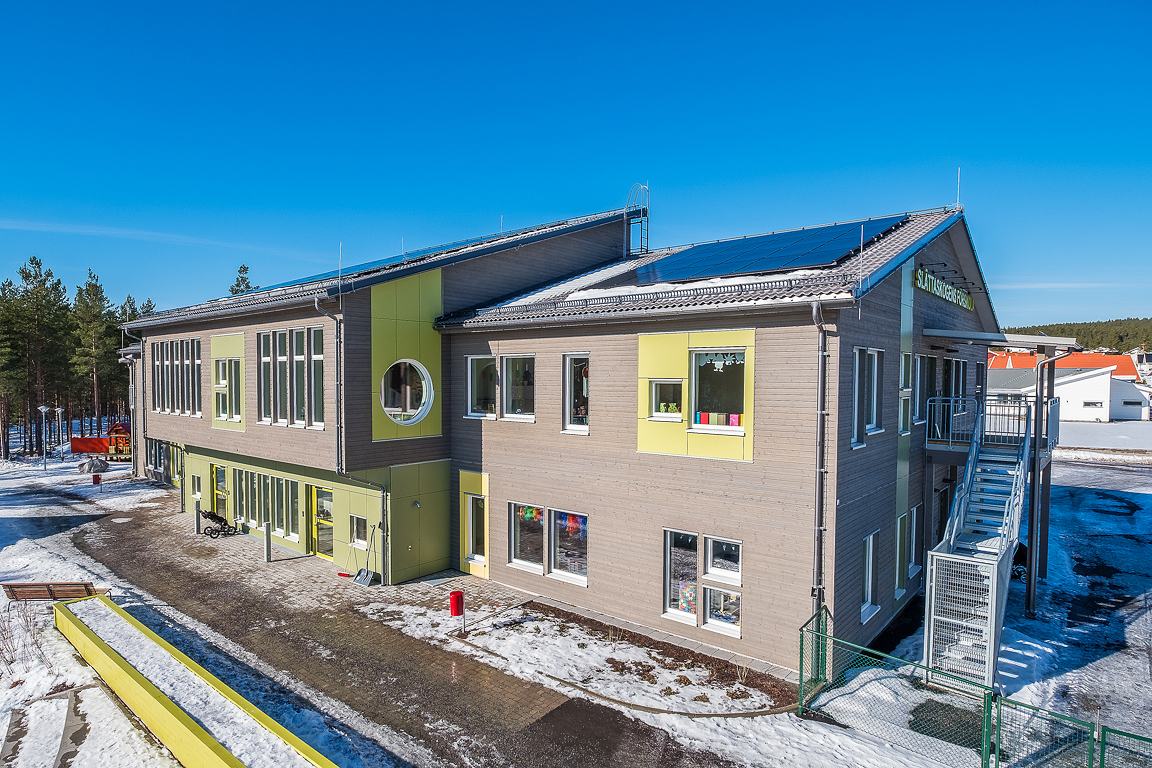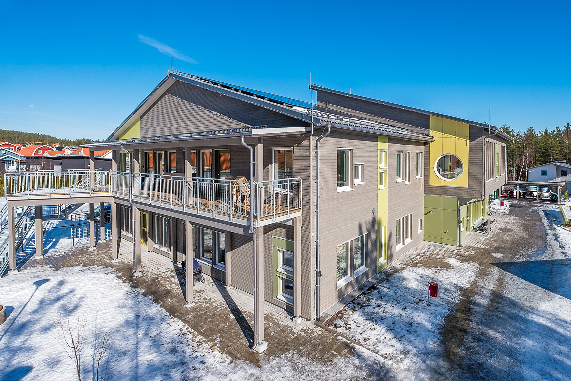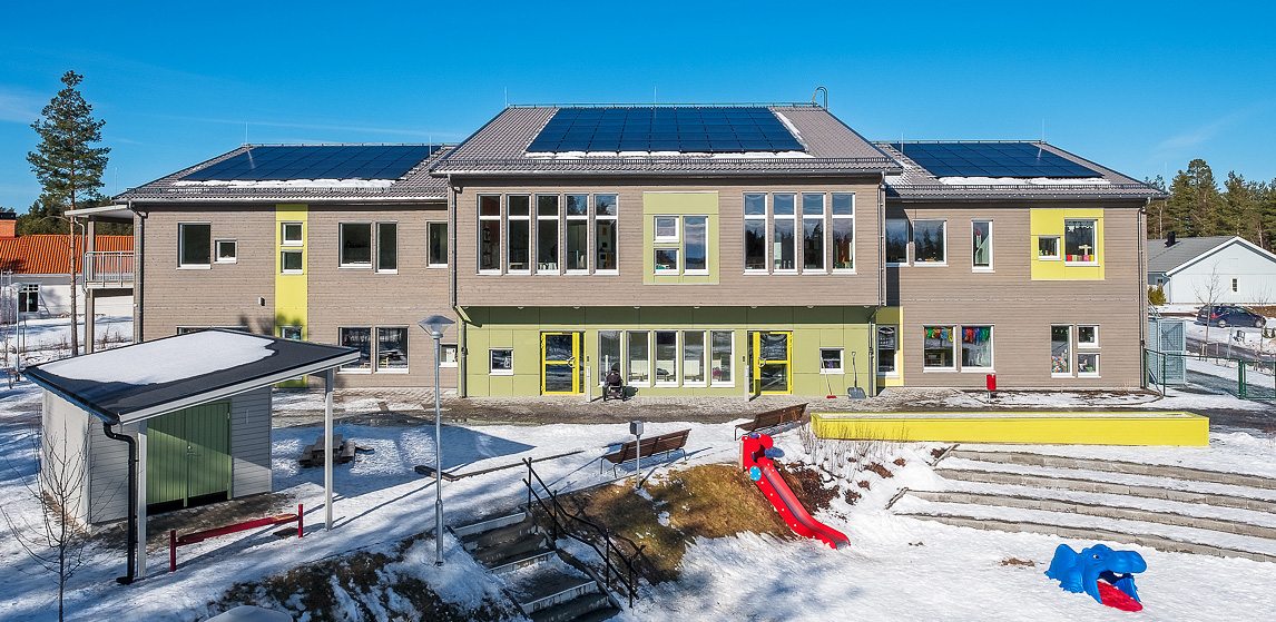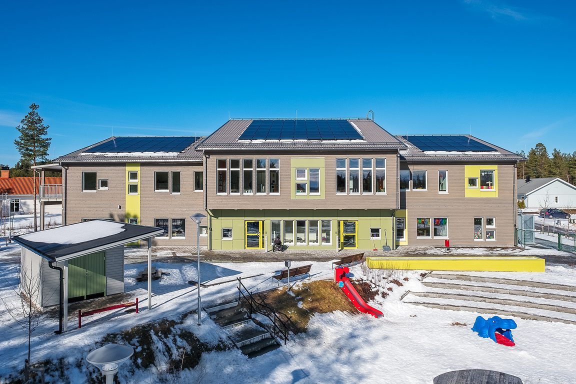 Timbeco designed a kindergarten in Falun, Sweden, manufactured the timber frame elements and completed the external construction works. A weatherproof building box, made of CLT (cross laminated timber) and timber frame elements, was erected in just three weeks.