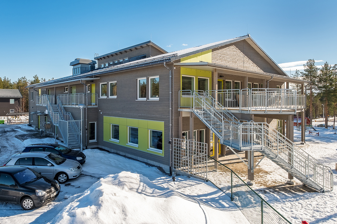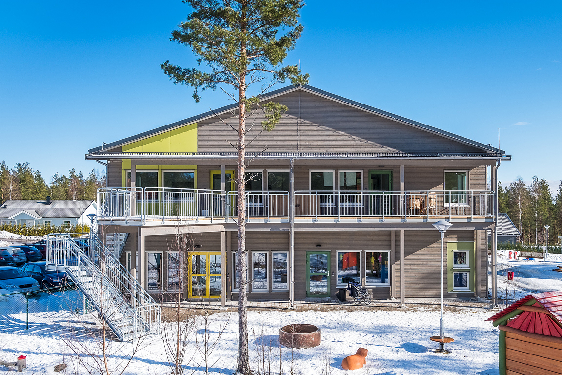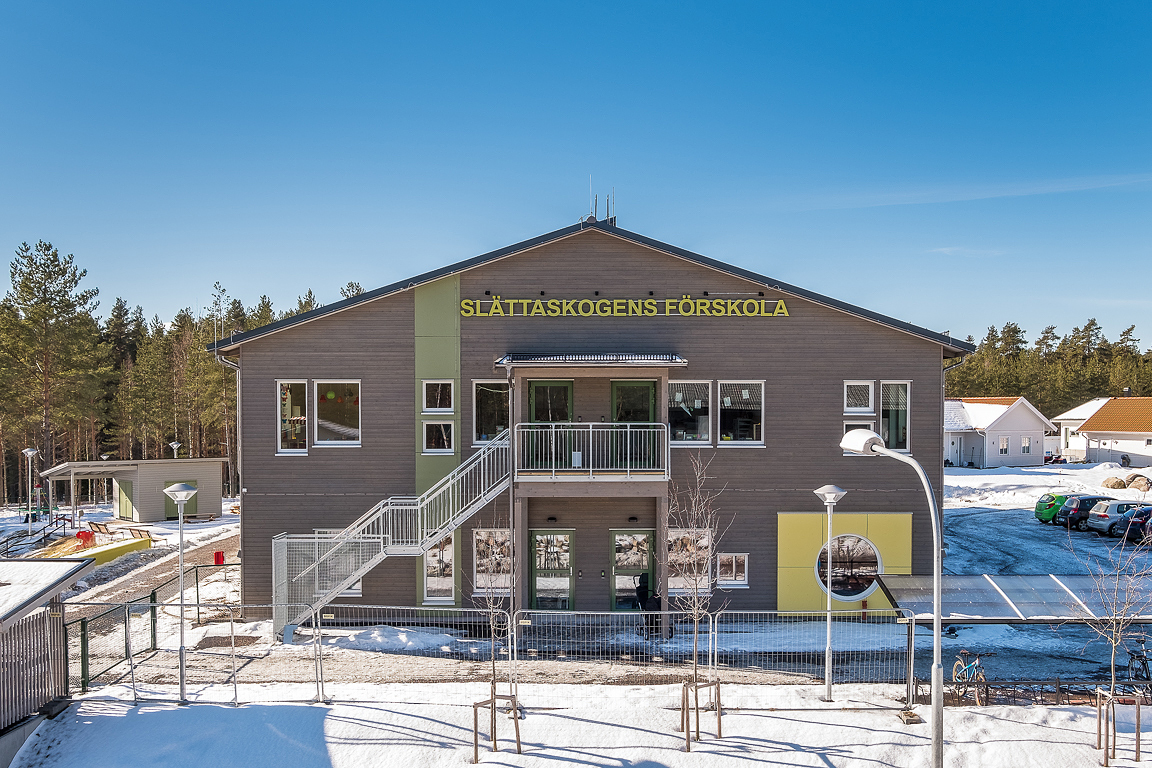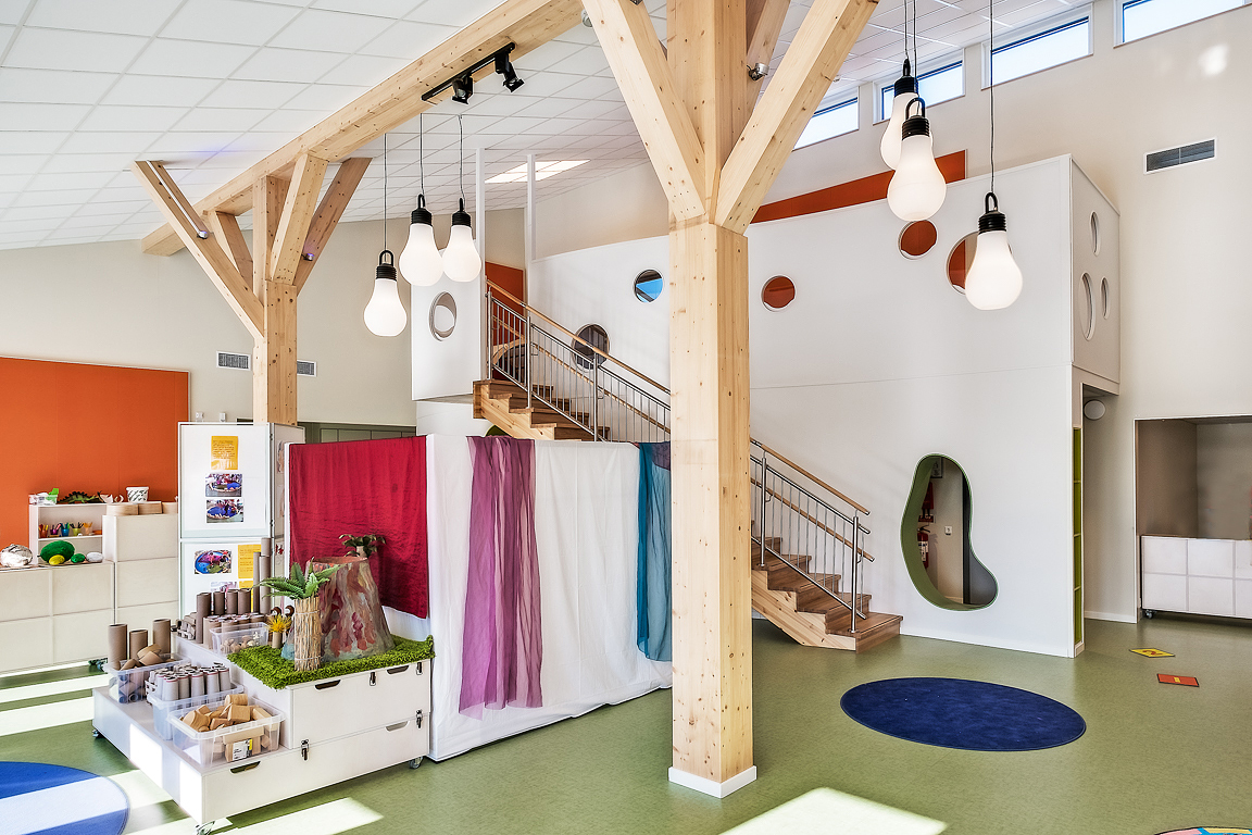 Timbeco designed a kindergarten in Falun, Sweden, manufactured the timber frame elements and completed the external construction works. A weatherproof building box, made of CLT (cross laminated timber) and timber frame elements, was erected in just three weeks.