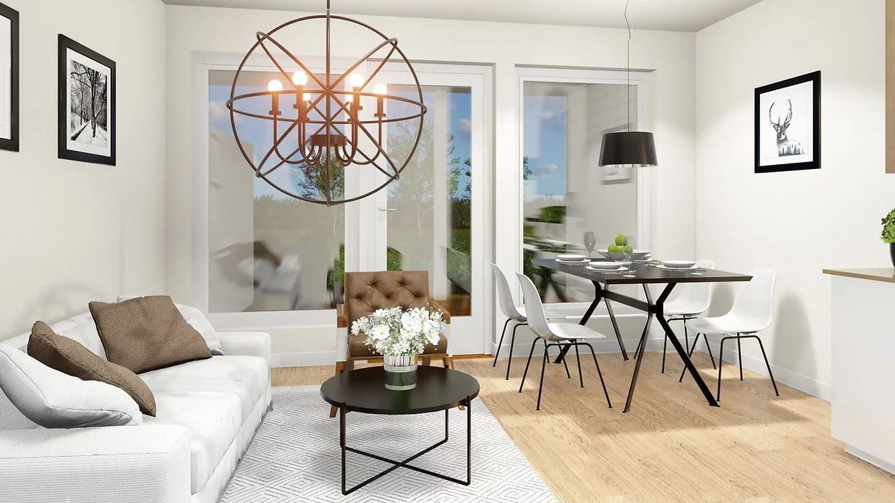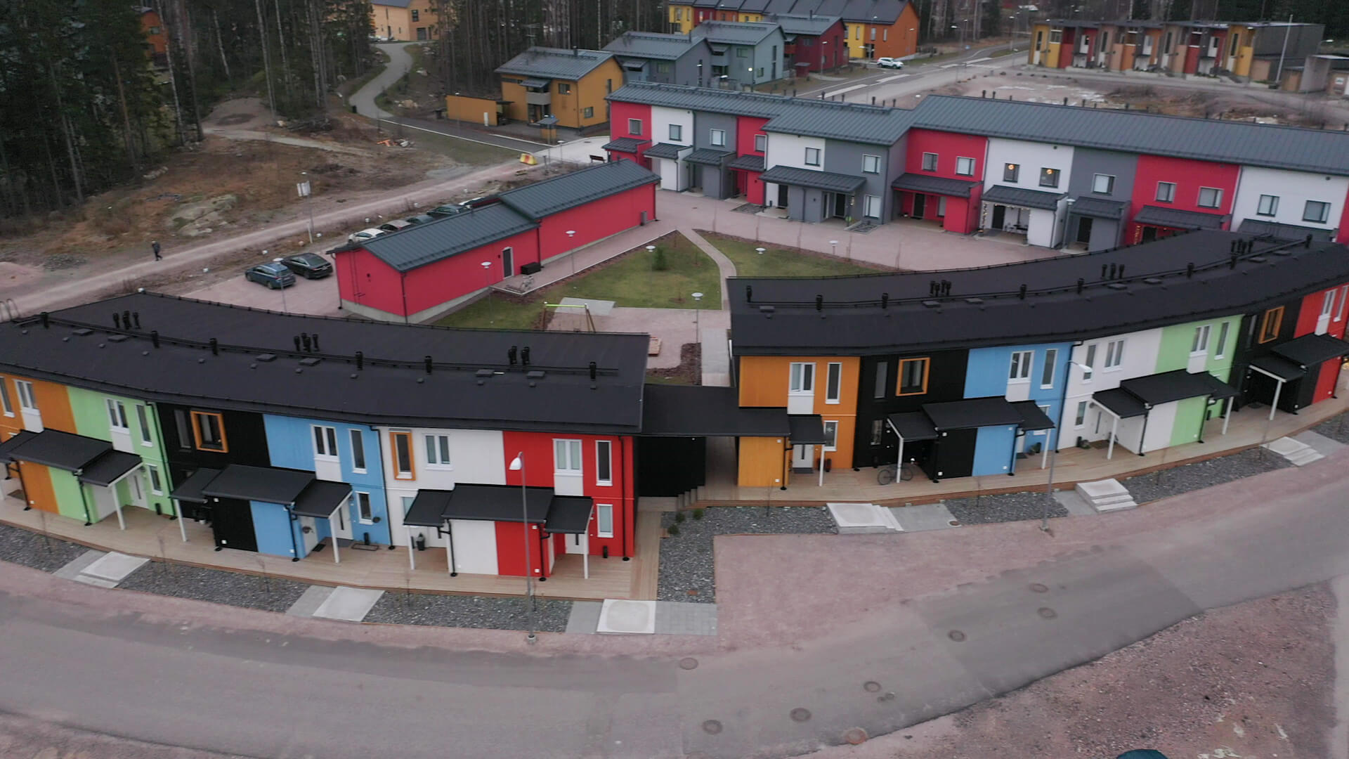 Timbeco designed, manufactured and erected energy-efficient 2-row houses with a modular solution in Helsinki. The modules (size 45 m2) were produced in the shape of a trapezoid. This allowed the facade of the building to have a semicircular shape.