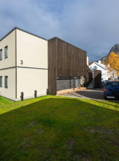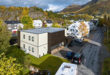 The Timbeco team designed, produced and erected a modular apartment building in Svolvær, Norway. The design of the building is based on the principles of „Timbeco Modular Standard“. Complete modules are combined into multifunctional living spaces on the „plug & play“ principle. The result is buildings that not only provide a modern and special living environment, but also have advantages in terms of health and indoor climate. Timbeco Modular Standard enables short construction times, minimizes on-site emissions and creates almost 100% recyclable housing.