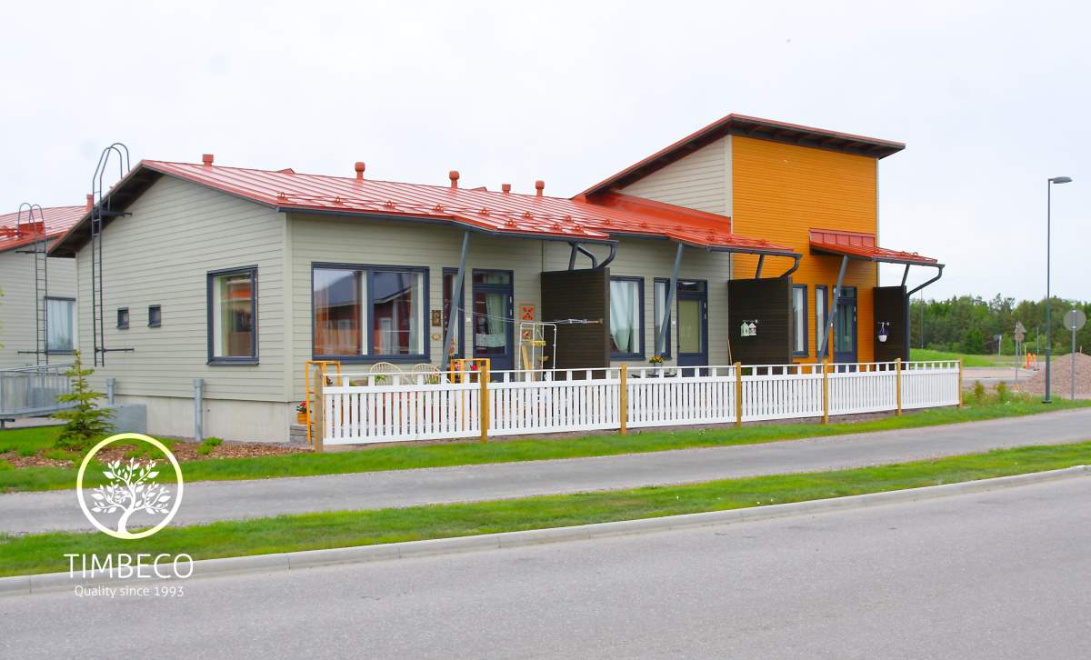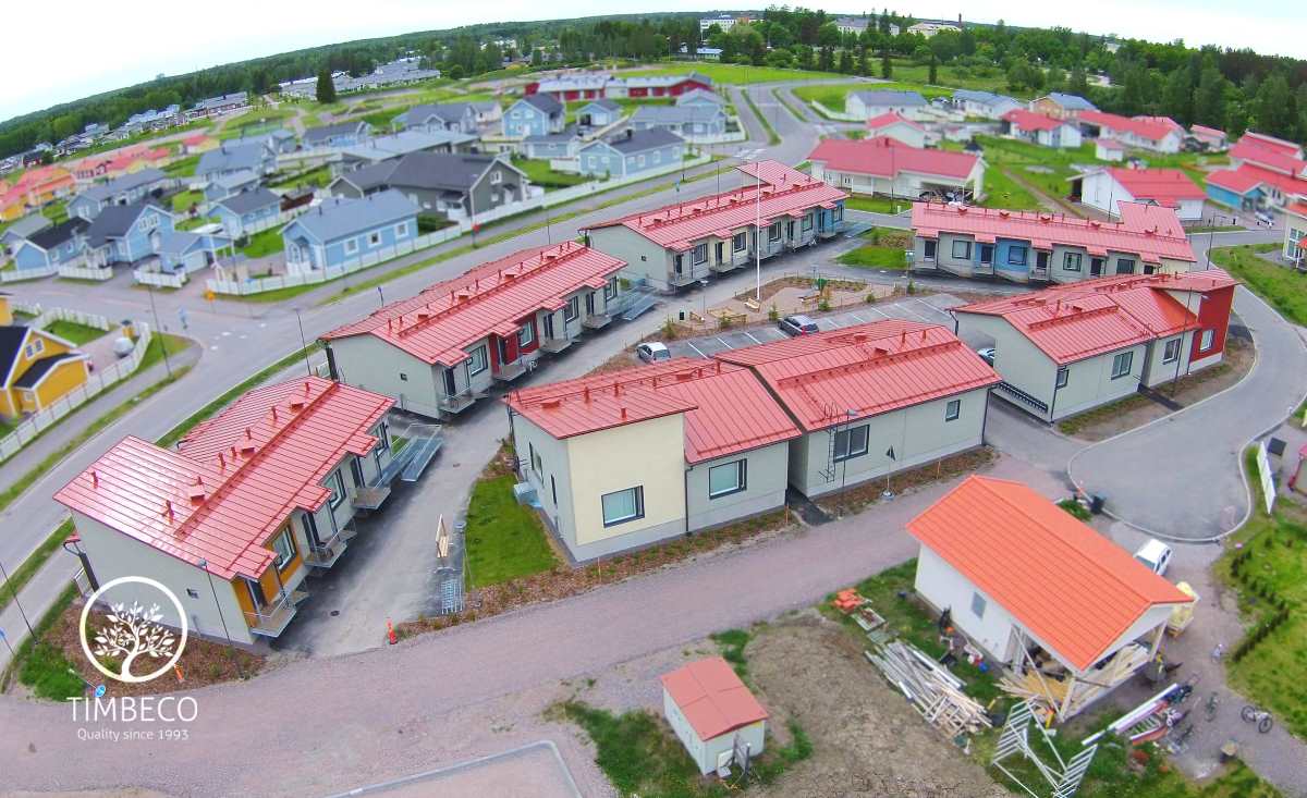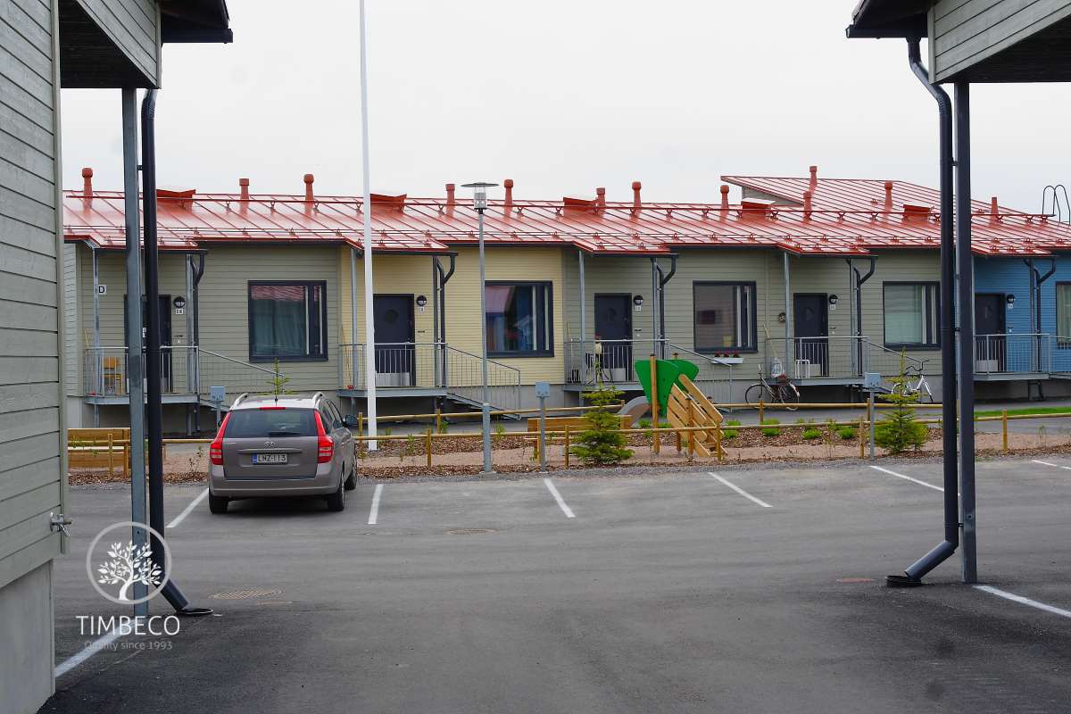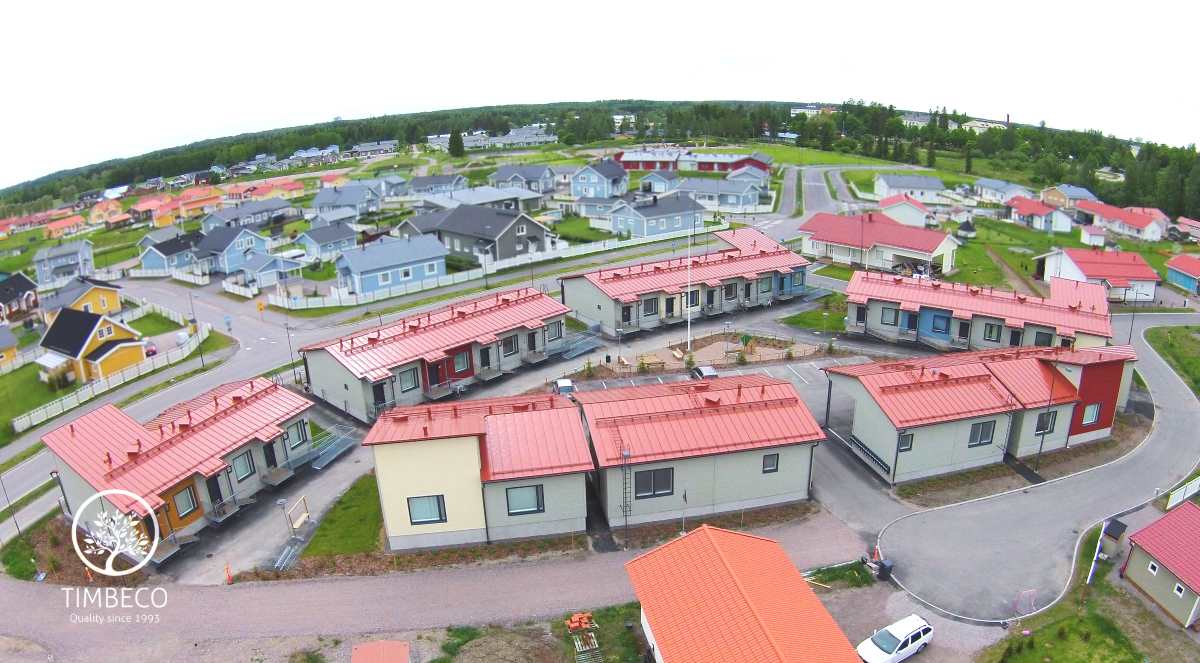 Timbeco manufactured and built 5 terraced houses up to the finished envelope stage in Finland