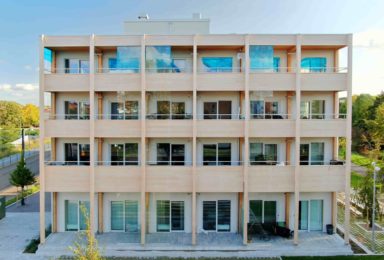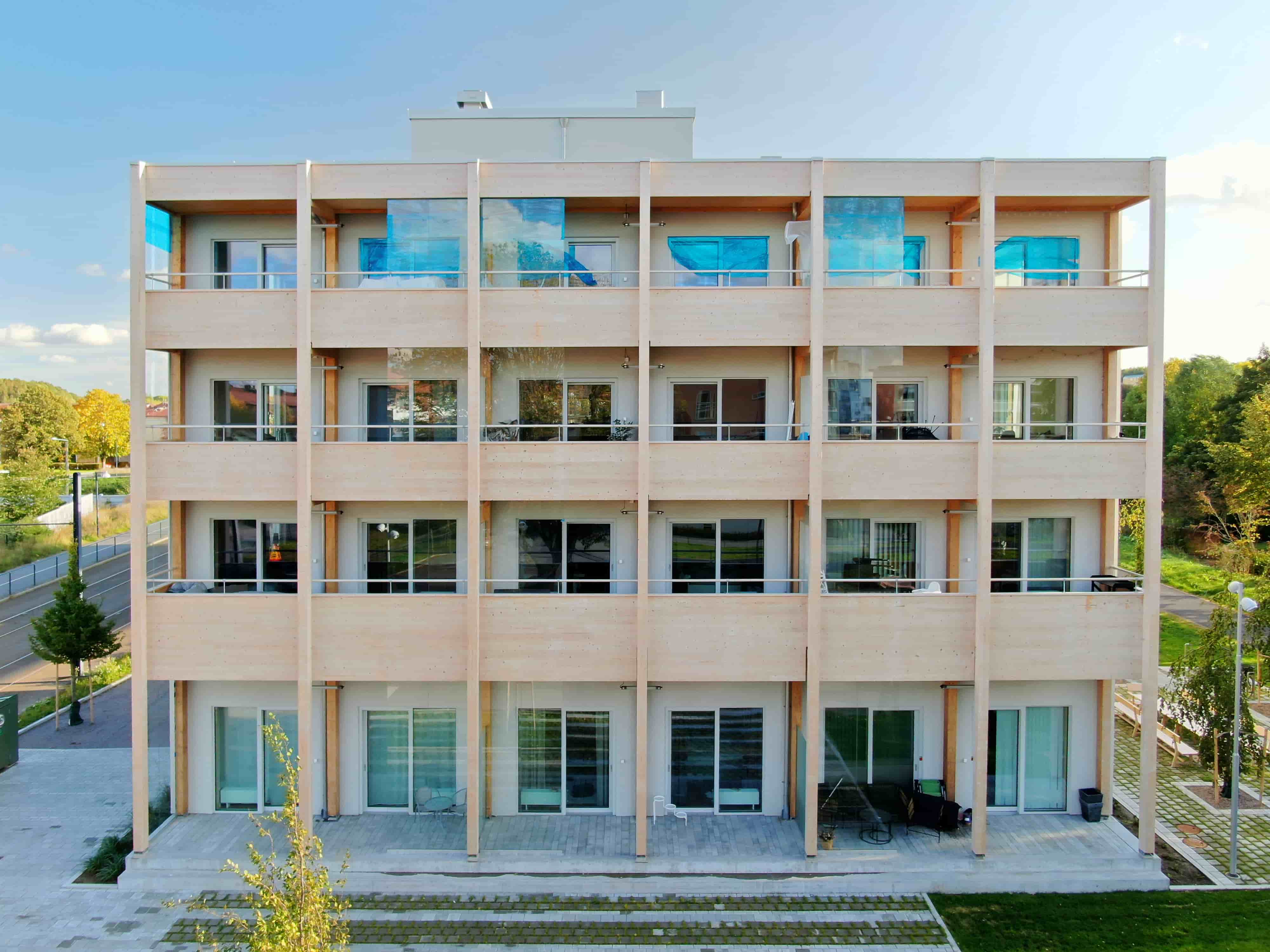 Timbeco Woodhouse OÜ designed and manufactured timber elements for two apartment buildings in Norrköping, Sweden. The building has a combination of timber frame elements and CLT panels. The buildings have a total of 27 apartments, ranging from 55 to 93 square meters.