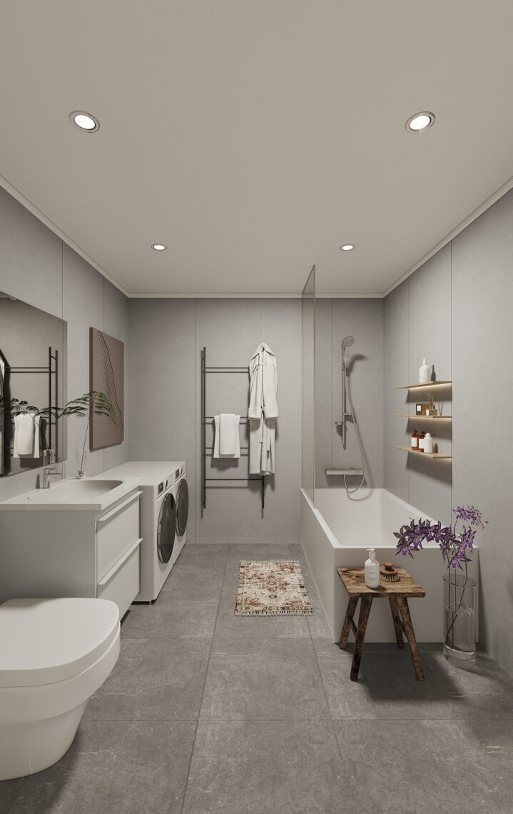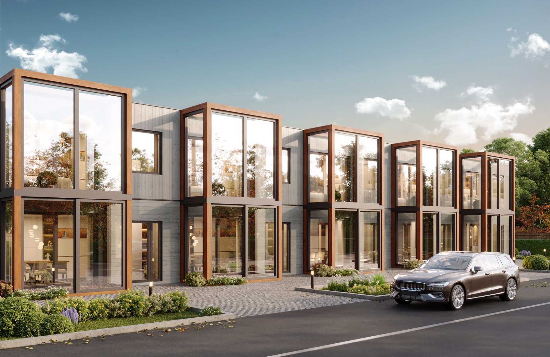 Timbeco houses are efficiently crafted as modular solutions, with most tasks, including interior and exterior finishing, utilities, and furniture installation, handled in the factory. This cost-effective process speeds up construction.