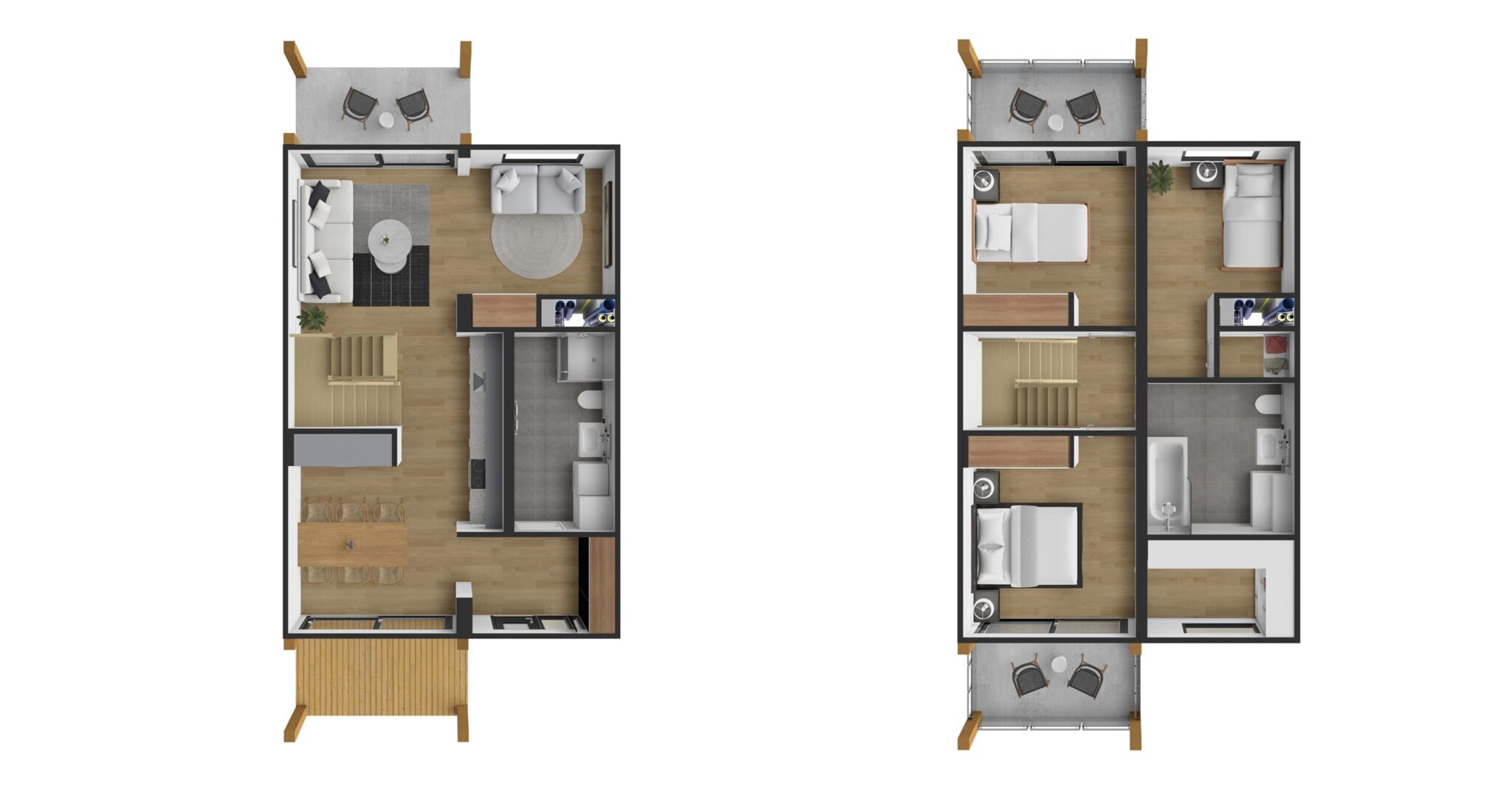 Timbeco LINK on disainitud funktsionaalseks modulaarseks ridamajade ehitamise lahenduseks. Korterid on projekteeritud 95,6m2 netopinnaga ning 3-magamistoaga. Mõlemal korrusel on avar vannituba. Kõikides tubades on põrandaküte, mis muudab toas viibimise nauditavaks ka jahedamal perioodil. Mõlemale majaküljele avanevad rõdud ja sisehoovi terrass.