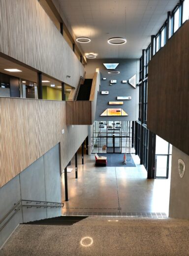 - Energieffektiv bygning: Skolen har et geotermisk varmesystem og oppfyller kravene til energiklasse A.