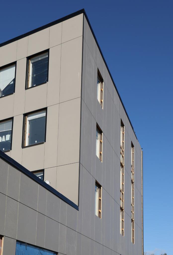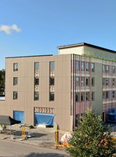 Träfasadelement för hotellbyggnad i Arninge, Sverige